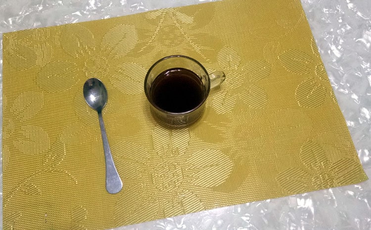 Hierdie tekstiele plekmatjie is 'n klassieke styl en dankbare kleur.